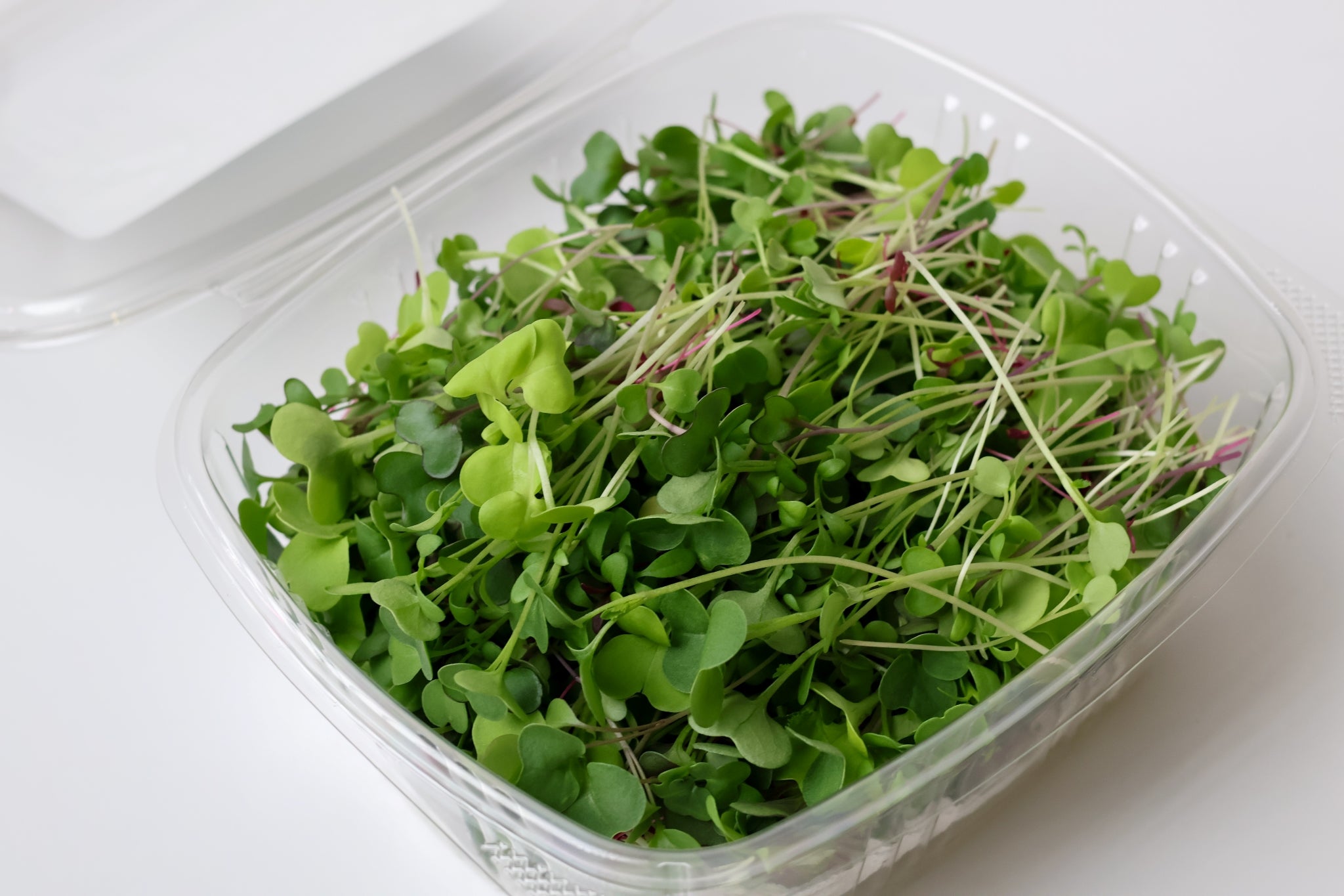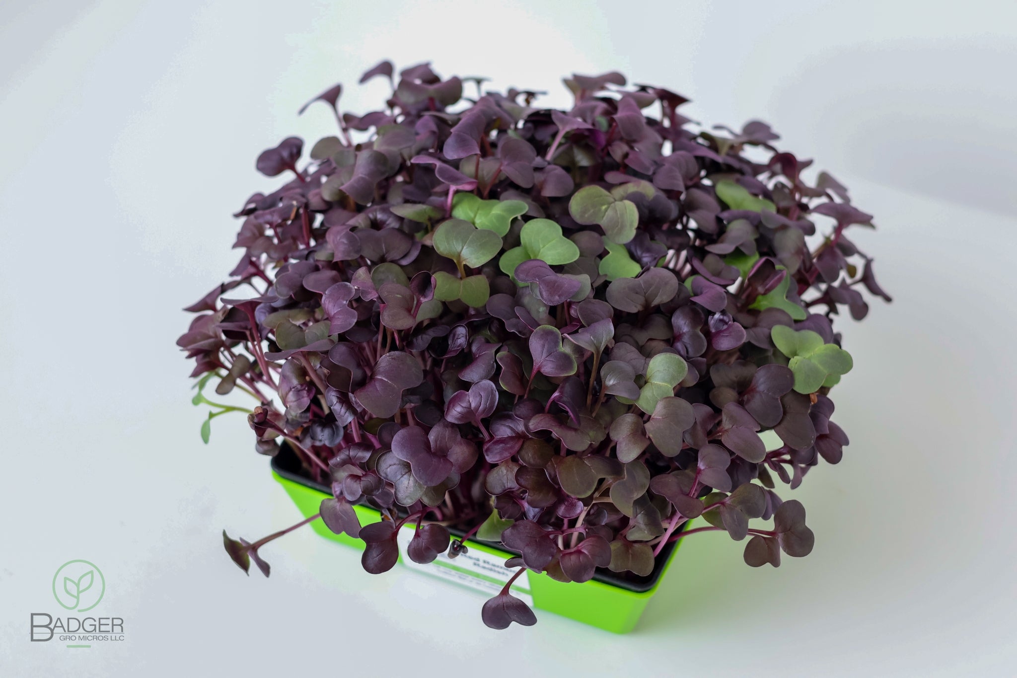Our Basic Blend Microgreens consist of Cabbages, Mustards, Cress, Arugula, and Amaranth. Our Basic Blend gives you a wide variety of colors and flavors that are sure to spice up any plate. Available in live flat and cut/packaged option